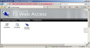 Finally, to access RemoteApps using the TS Gateway/Web Access Interface, open Internet Explorer and enter https://TSWebServerName/TS