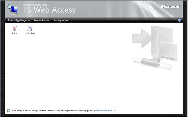 3. Close and re-launch IE. Navigate to the TS Web Access page and login to see your RemoteApp Applications