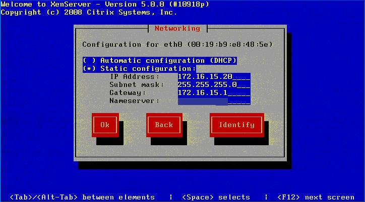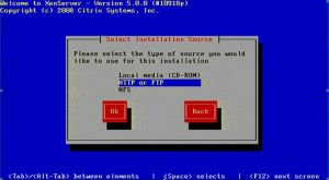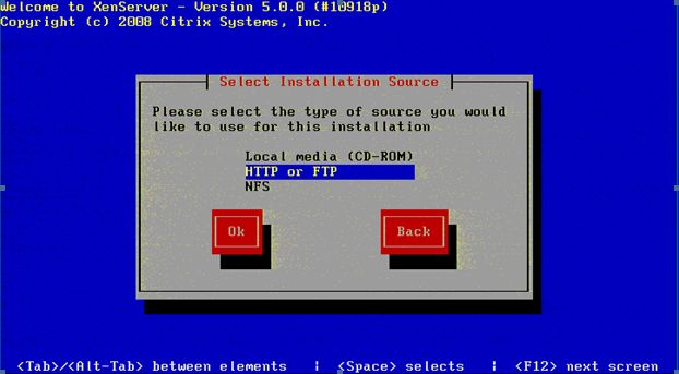 1. Insert the XenServer5 CD and boot the server. (XenServer5 can also be installed from an HTTP or FTP site)