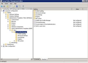 UPM would need to be installed to all XenApp servers, and if using Provisioning Server, to your base OS image. By default, the installation directory is C:\Program Files\Citrix\User Profile Manager. Like the Flex Profile Kit, UPM provides an INI files (stored in the installation directory) for custom configurations, but it also provides a GPO ADM template which can be imported into the Group Policy Administration console. Personally, I like configuring UPM through group policy, especially in a XenDesktop/Provisioning Server deployment simply because it may keep you from the process of: