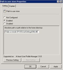 Perhaps the most important policy to set is Path to user store. This represents the directory in which all user personalization settings will be saved. For the UPM policies, #cn# is used instead of %username%.