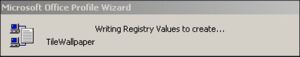 After setting the preferred value, login with a user account experiencing the problem. When using the FPK, Proflwiz runs at logon and logoff. When DISPLAY_PROFLWIZ_ERROR has been enabled, you will see a little Microsoft Office Profile Wizard window which tells you exactly what Proflwiz is doing. In this case, at least initially, Proflwiz was experiencing problems when saving the TileWallpaper setting as shown below: