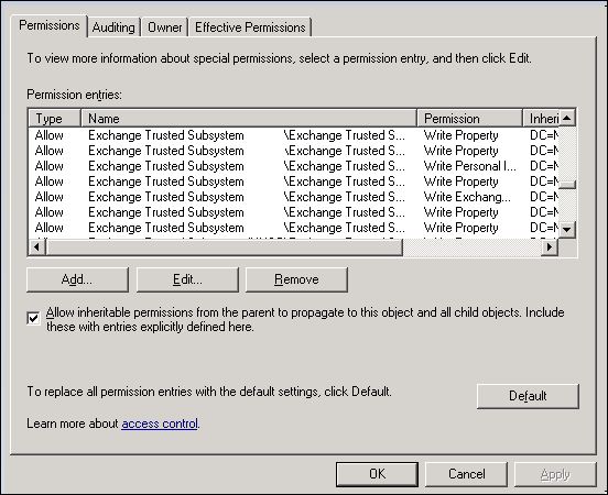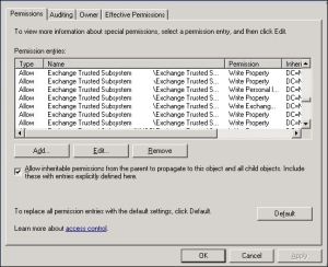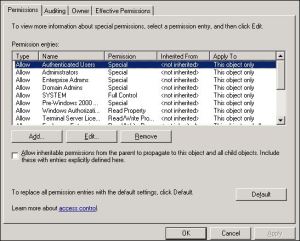 Where did you find the advanced setting with the checkbox for inheritance. We have advanced settings in AD for the user, but no checkbox.