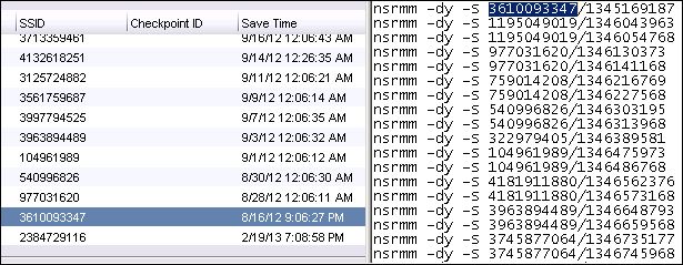 mminfo -avot -c server1.ballfield.local -q “savetime<=3 months ago" -r volume,ssid,cloneid,savetime,ssretent > c:\temp\server1_ss_3MO.txt