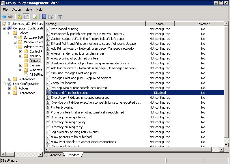 A more detailed explanation of the Point and Print Restrictions policy can be found here.