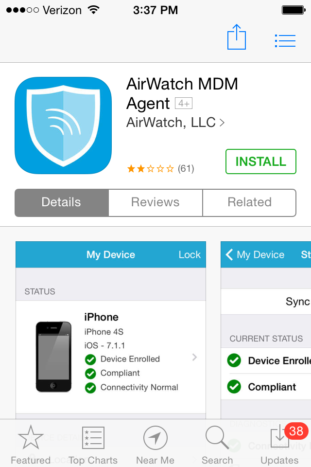 2. Open the Apple App Store and search for AirWatch MDM Agent and then tap INSTALL.