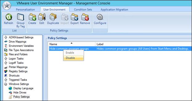3. With the policy disabled, reboot the computer/virtual machine. Once you log back in, you should see the common program groups